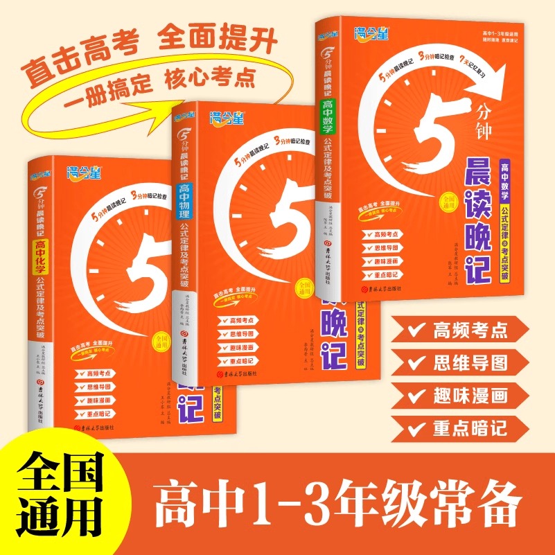 满分星晨读晚记5分钟高中数理化公式 定律及考点突破手册语文数学物理化学基础知识高频考点思维导图定理大全五分钟知识点总结速记