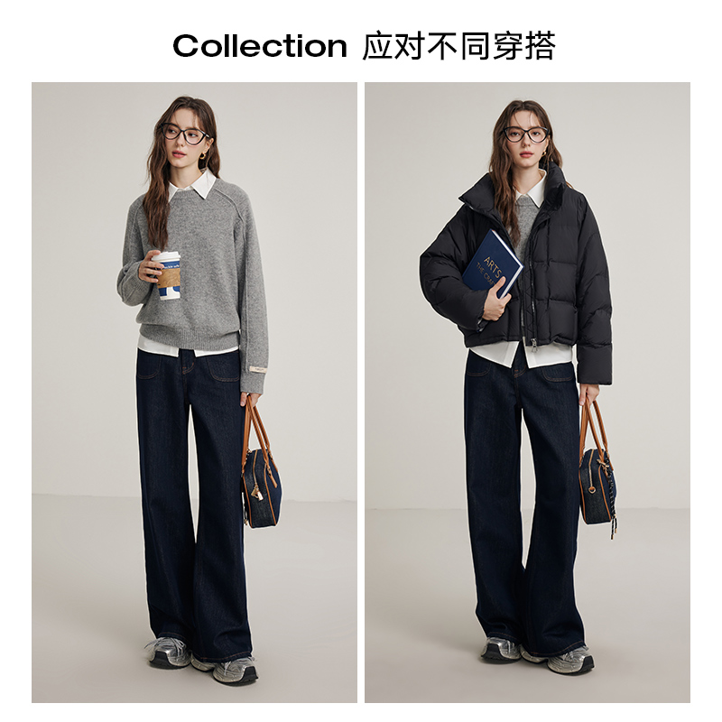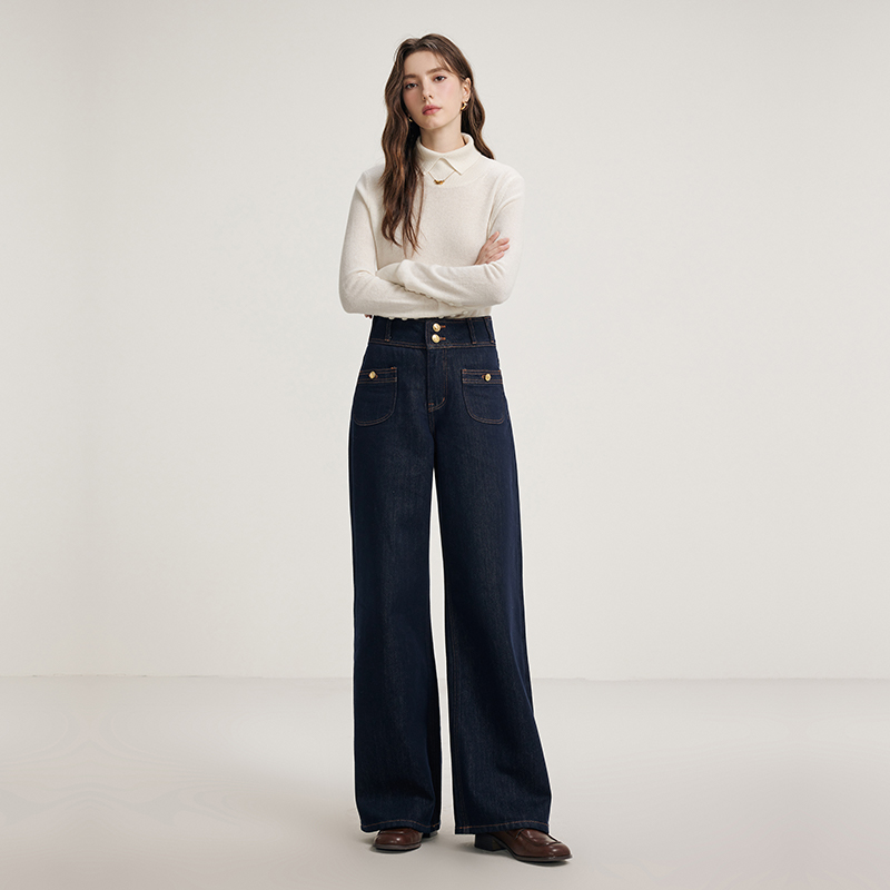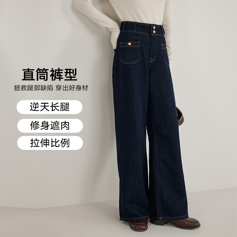 直筒裤 复古丹宁牛仔裤 微喇阔腿裤 秋冬新款 KBNE 女装 莱赛尔加绒
