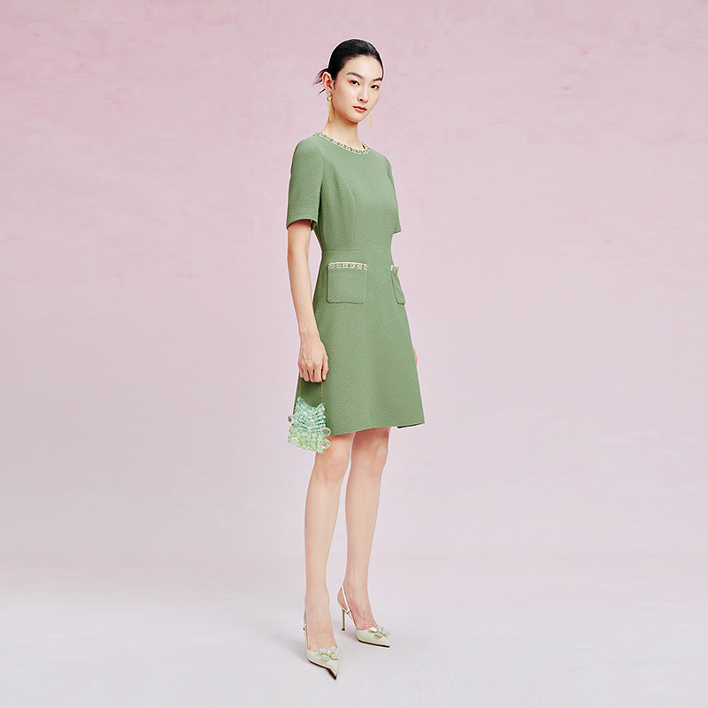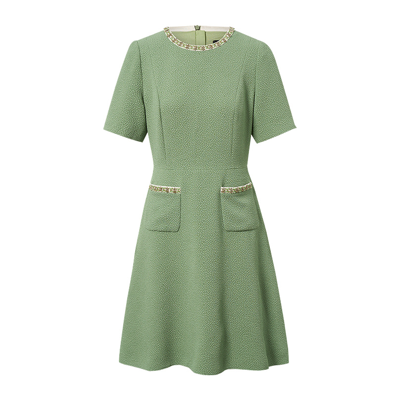 佐丹奴裙子女新款 T恤连衣裙女05465463 纯棉纯色半弧口袋圆领短袖