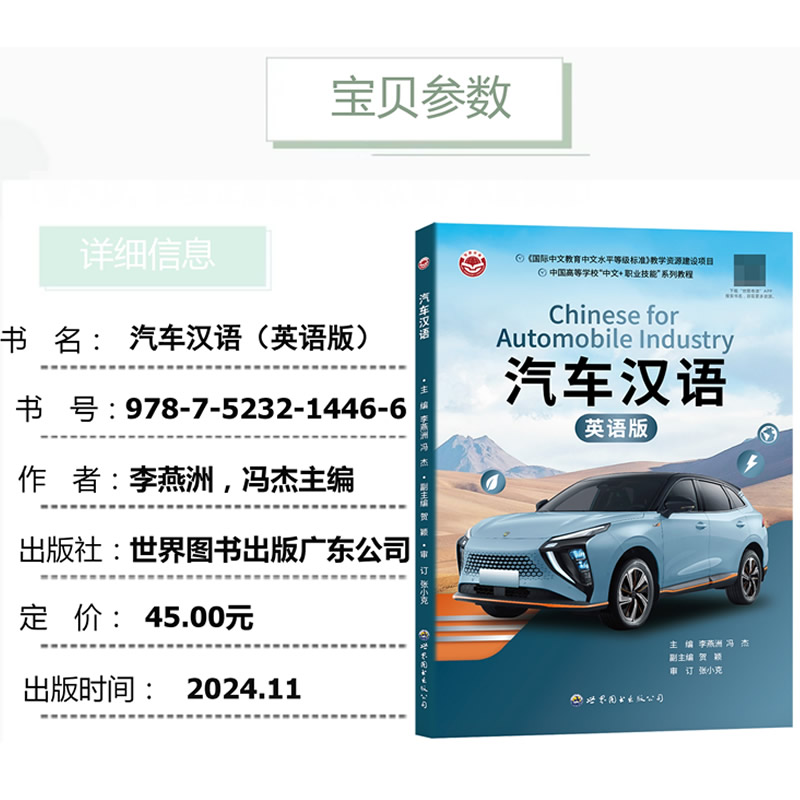 公司 附音频英语国家汽车专业知识介绍对外汉语汽车销售后服务维护维修英语类汽车类专业员工培训教材世界图书出版 汽车汉语 英语版