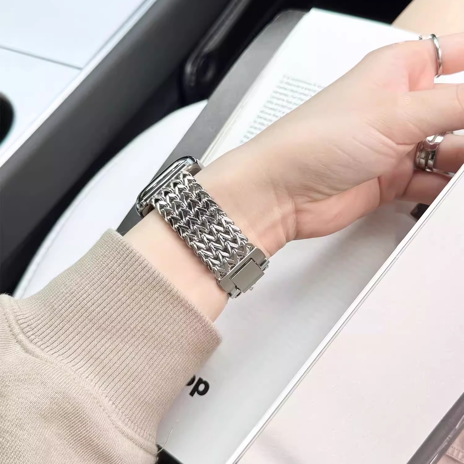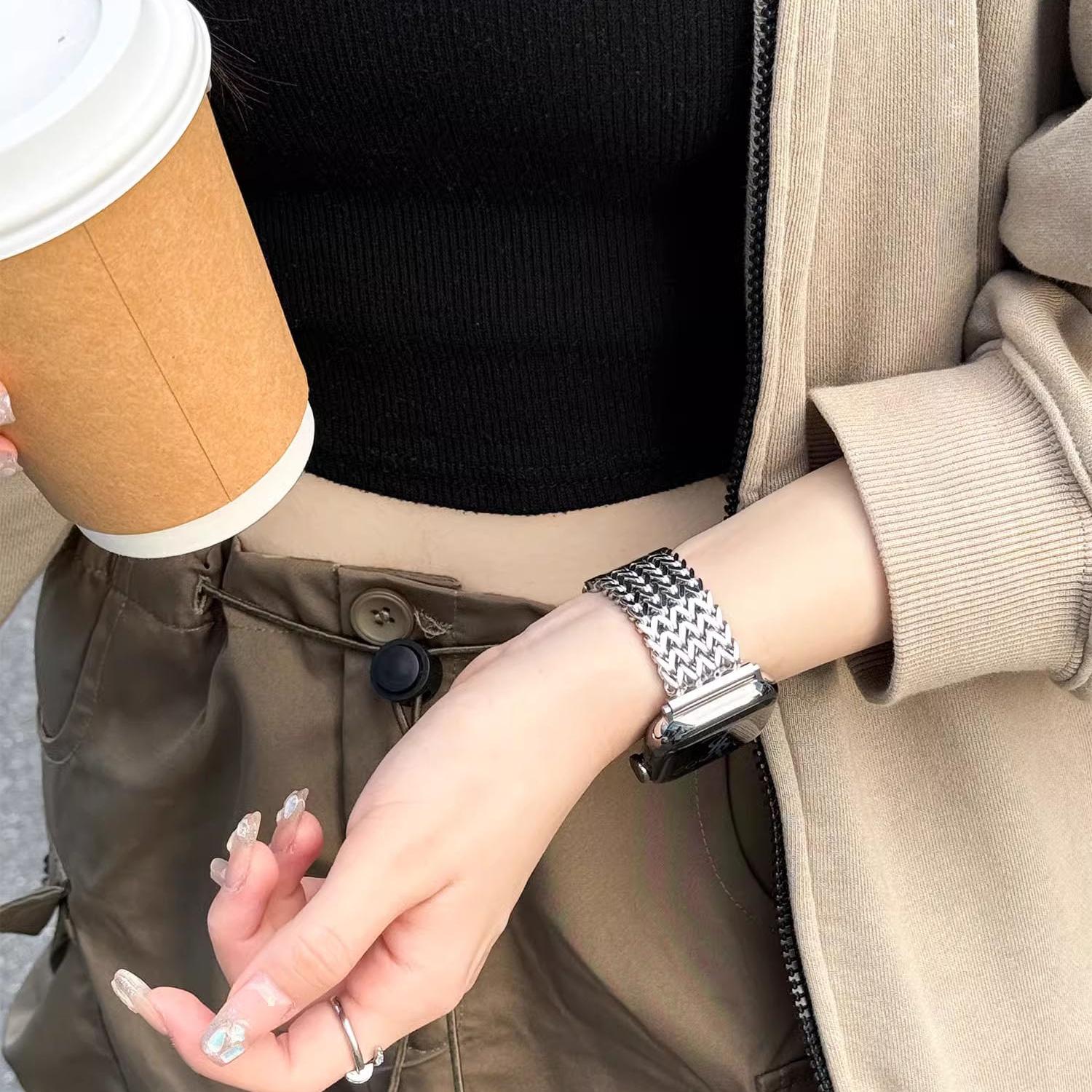 爱心编织不锈钢金属表链watchFit3高级女iwatchS110 5代se编织45mm腕带41mm 适用华为fit4表带ins新款