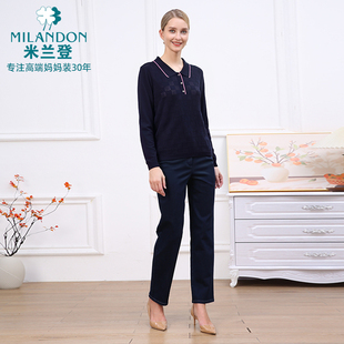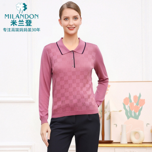 女长袖 米兰登中老年妈妈装 POLO领针织衫 新款 休闲上衣厚 2025年秋季