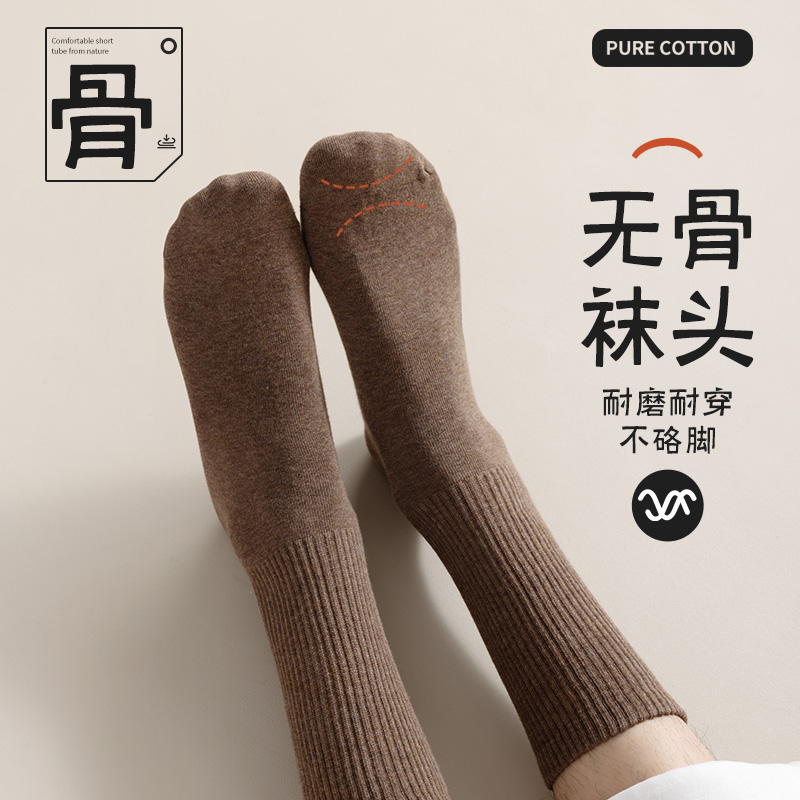 诸暨袜子男春秋季 纯色棉袜白色中筒袜 防臭短袜吸汗透气运动袜男士
