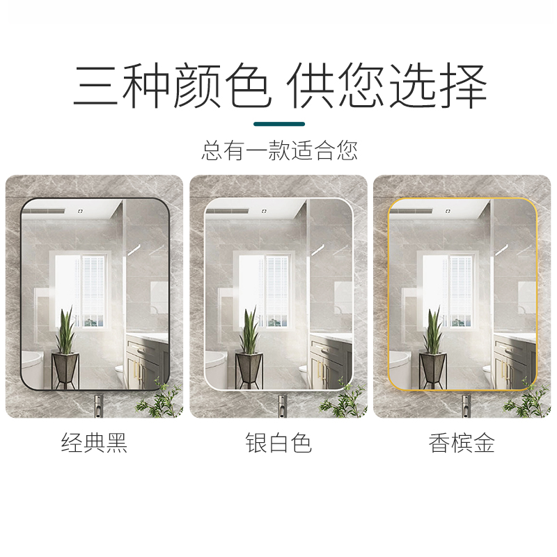 镜子洗手台梳妆镜壁挂式 卫生间厕所贴墙自粘免打孔化妆洗脸玻璃镜