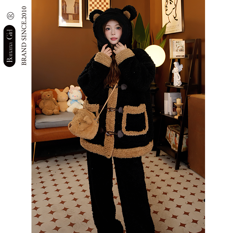 加厚保暖家居服可外穿 卡通大码 Bananagirl珊瑚绒睡衣新款 女士开衫