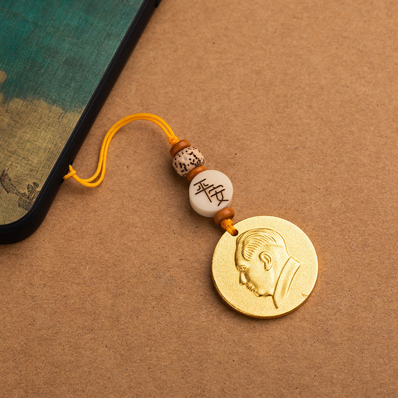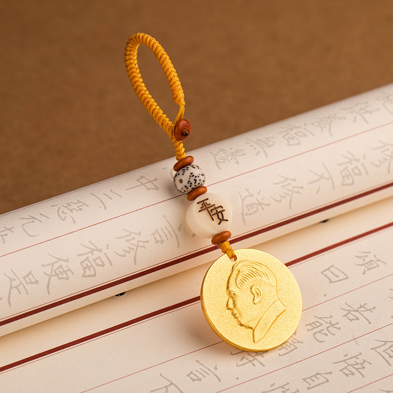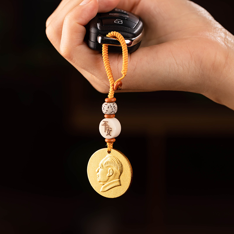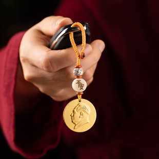 沙金纯黄铜伟人毛主席头像汽车钥匙扣挂件复古铜像手机U盘平安饰