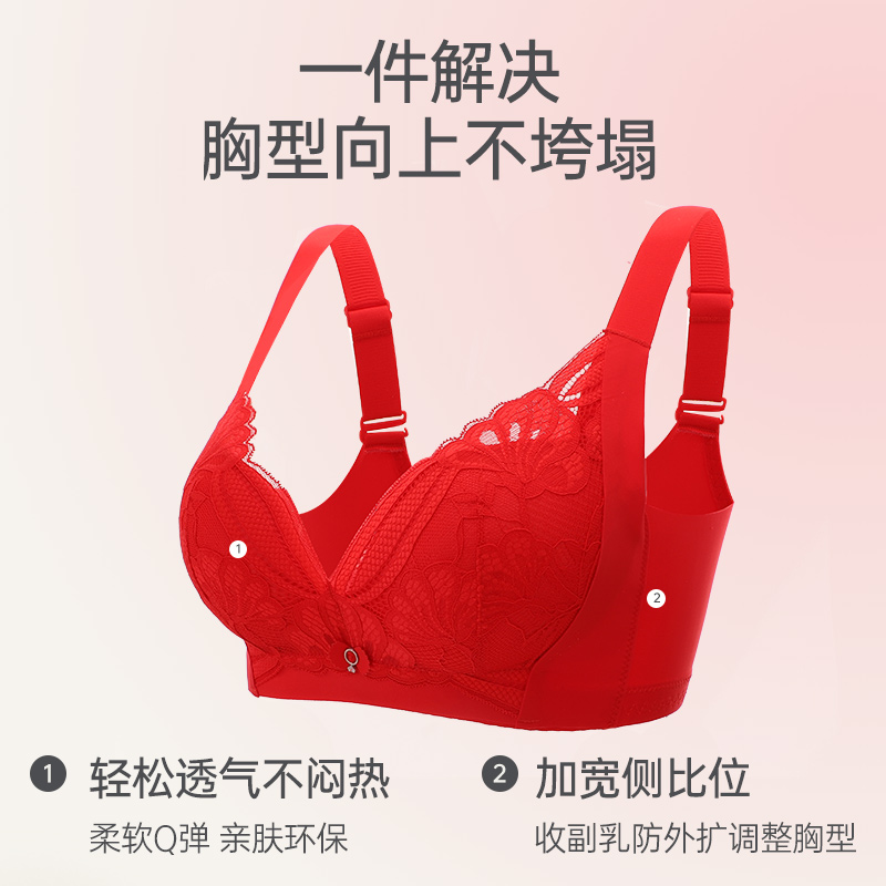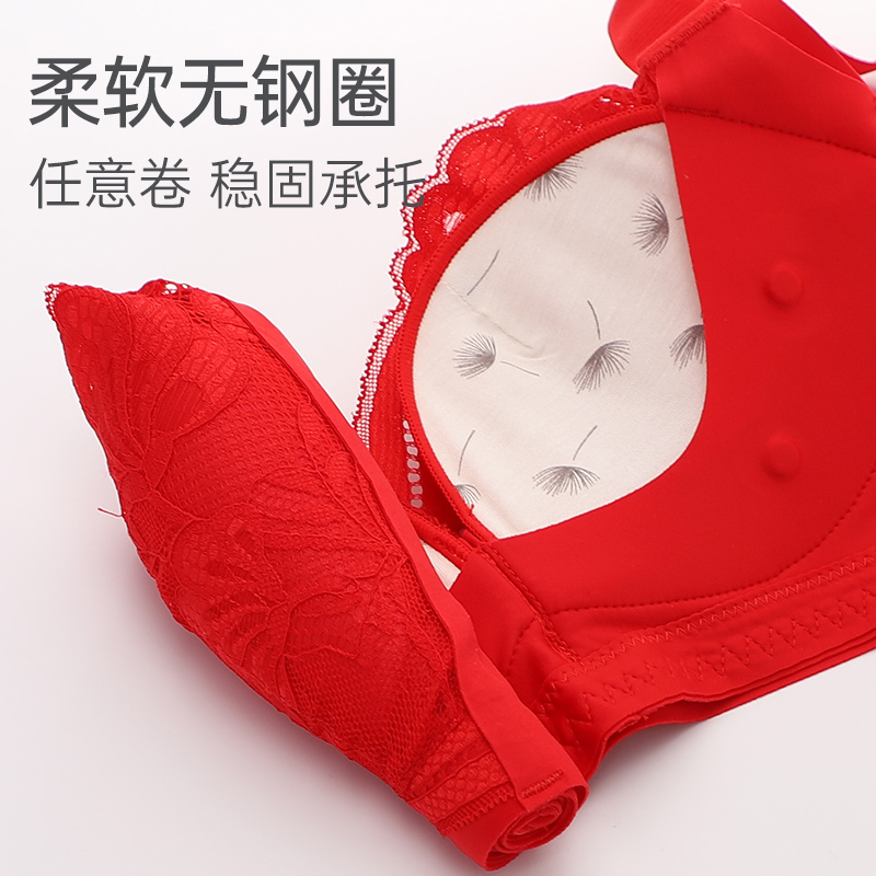 依曼丽本命年红色内衣女小胸聚拢防下垂无钢圈婴儿棉新年结婚胸罩