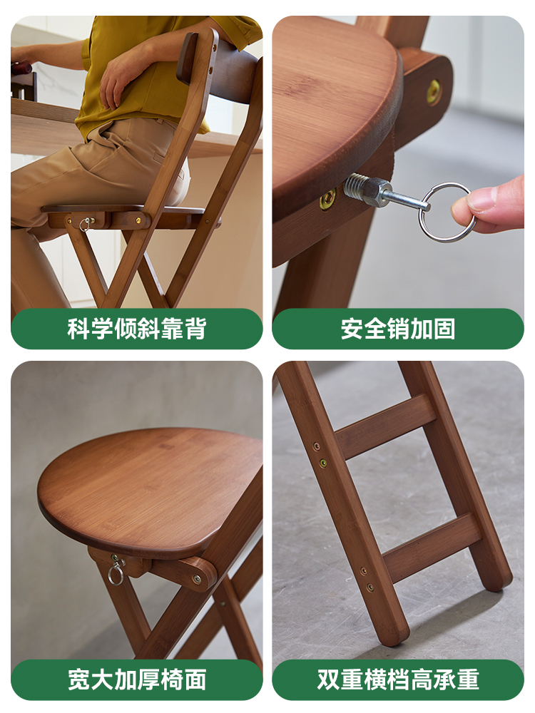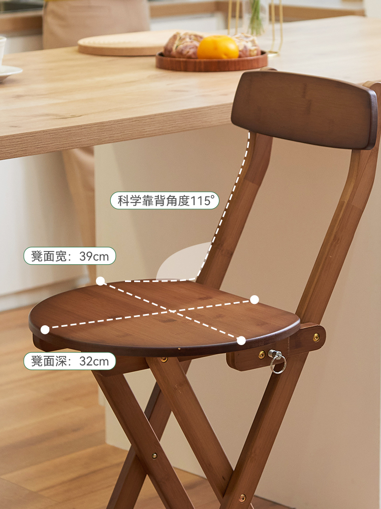 高脚凳可折叠吧台靠背椅子收银台便携式 家用原木风餐椅成人小板凳