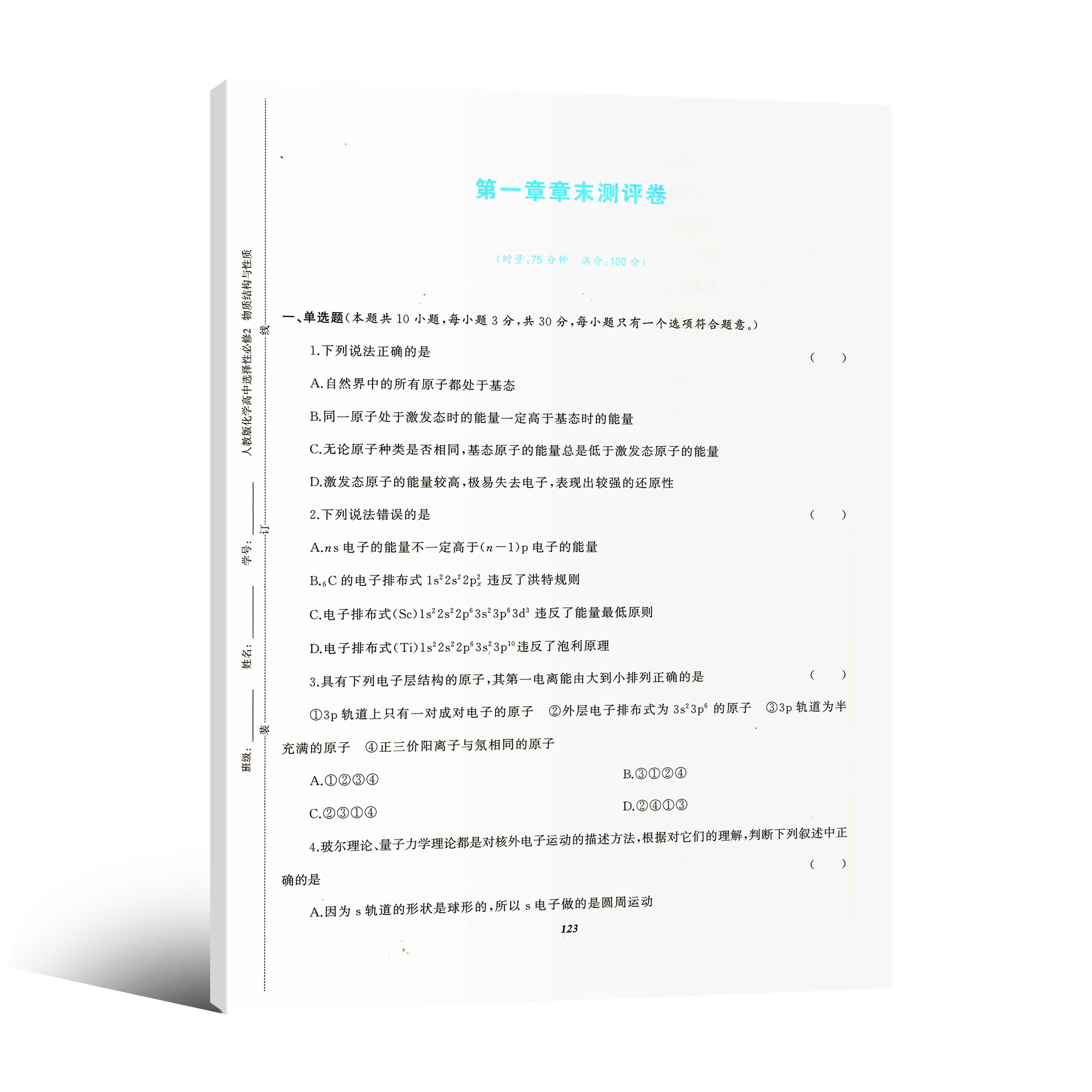 2025新版 高中选择性必修二2物质结构与性质含试卷答案同步基础训练 高中化学选择性必修二基础训练同步实践评价课程基础训练人教版