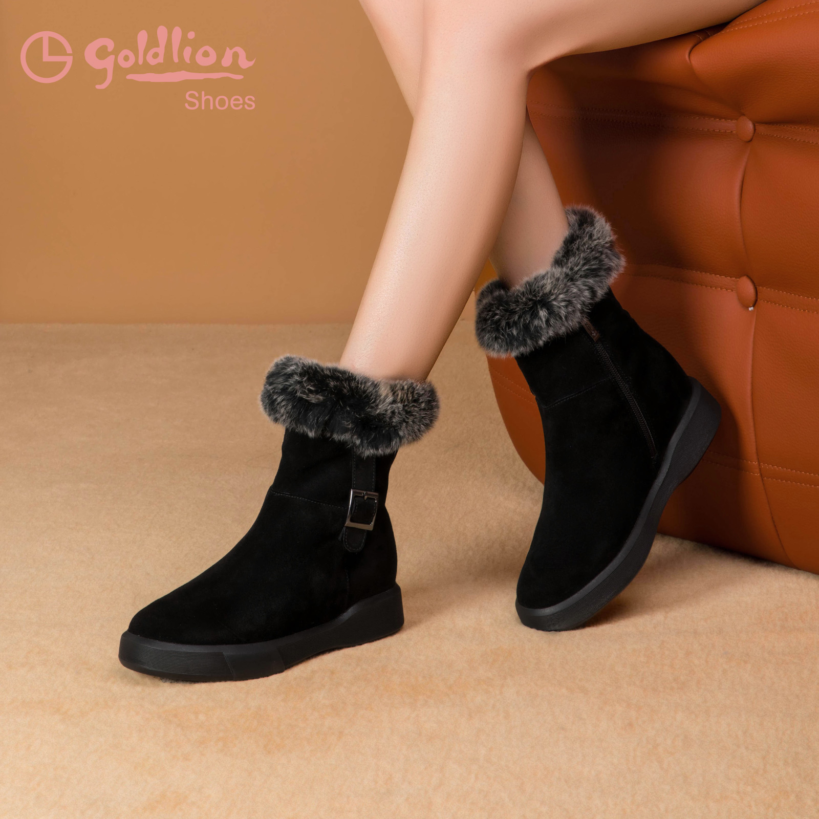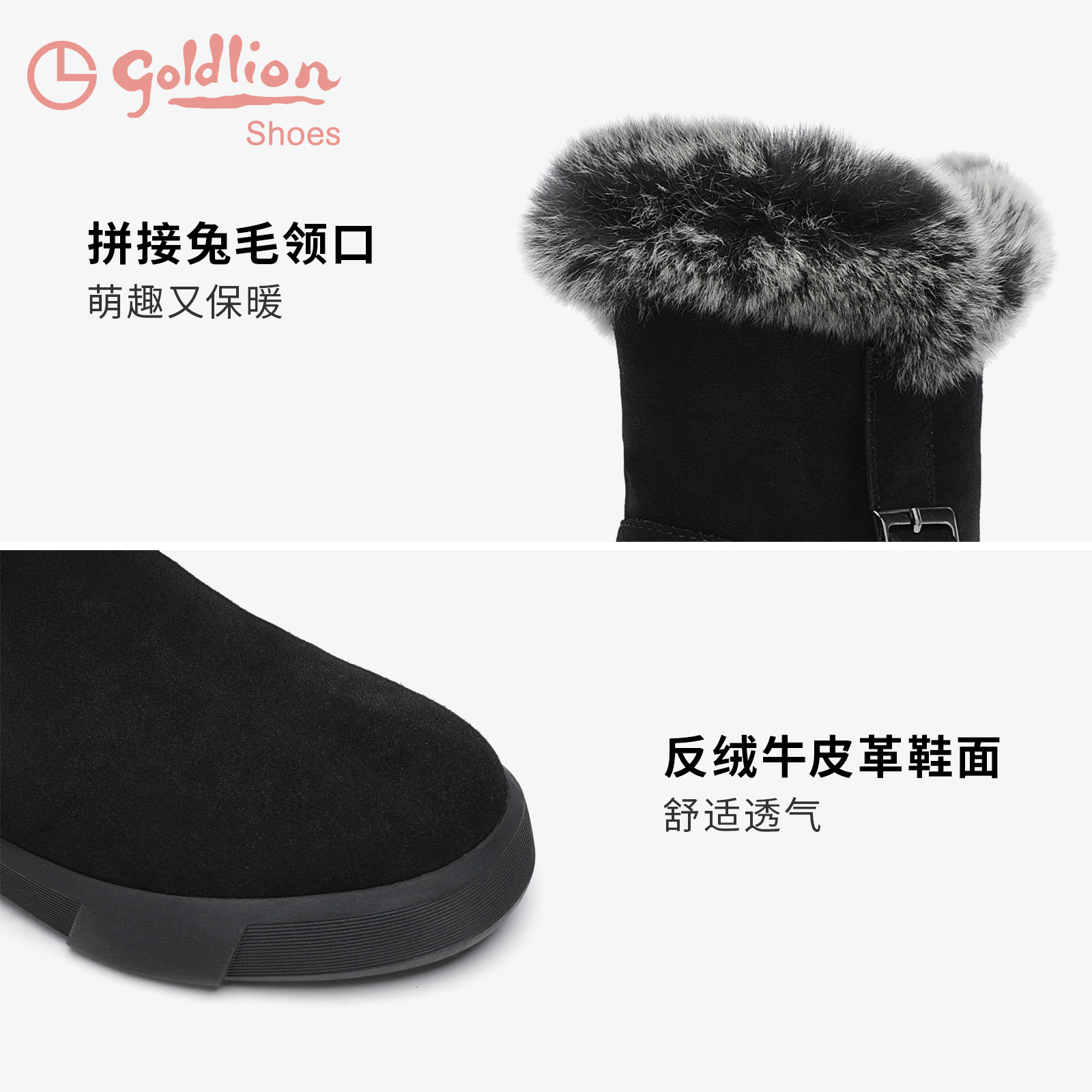 保暖毛领东北加绒加厚棉鞋 新款 中筒短靴黑色雪地靴 冬季 金利来女鞋