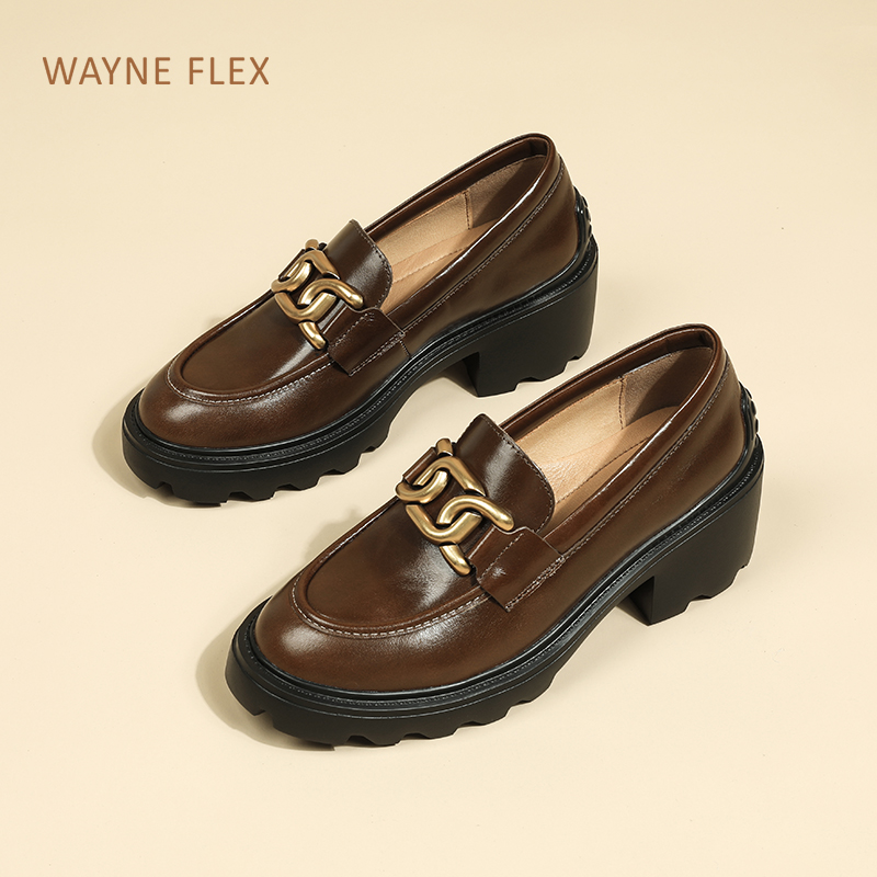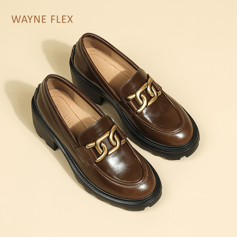 女复古乐福鞋 韦恩Wayne 粗跟增高显瘦单鞋 皮鞋 英伦风 Flex时尚