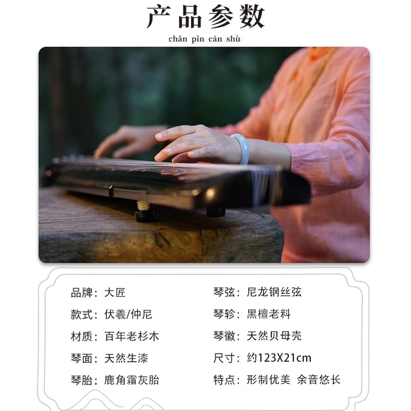 古琴老杉木初学者入门考级伏羲式 专业演奏七弦古琴官方旗舰店