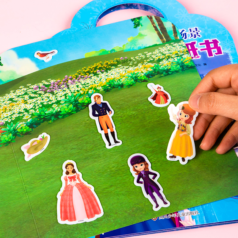 贴纸书女生趣味卡通可爱玩具贴纸 故事场景0到3到6岁女孩反复粘贴画书儿童艾莎益智换装 冰雪奇缘小公主苏菲亚贴纸书泡泡贴纸书 经典