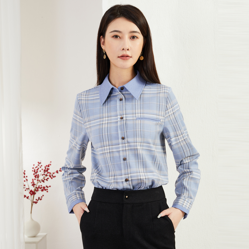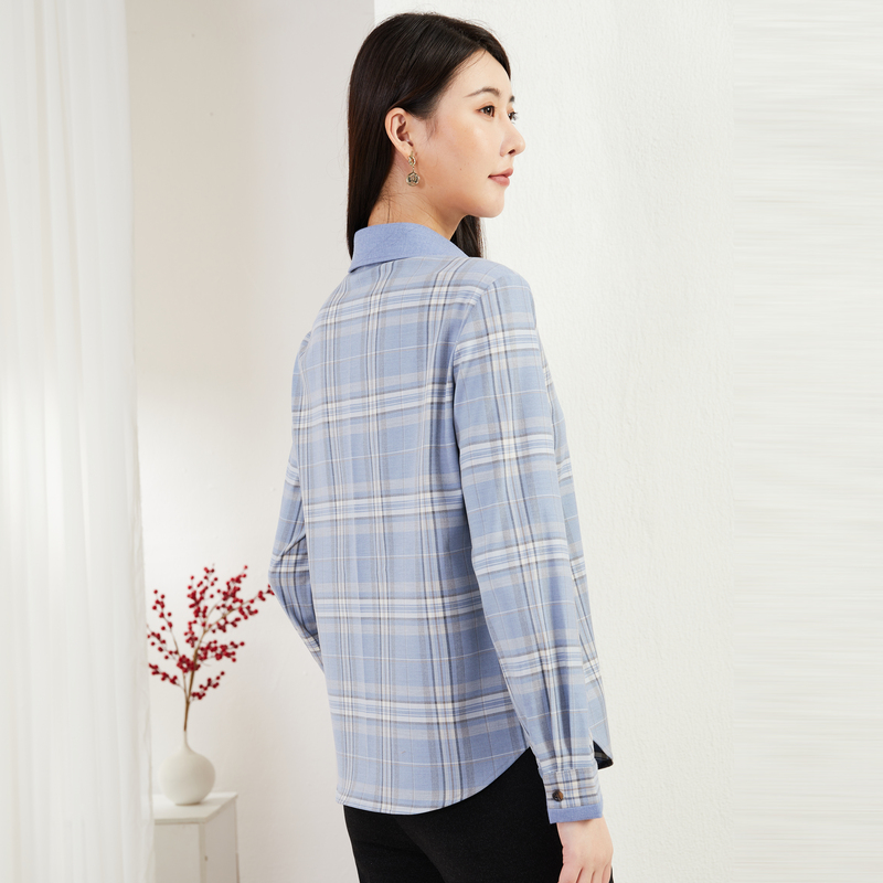 磨毛高级时尚 女格子衬衫 流行长袖 洋气时髦新款 叠穿打底衫 春秋新款