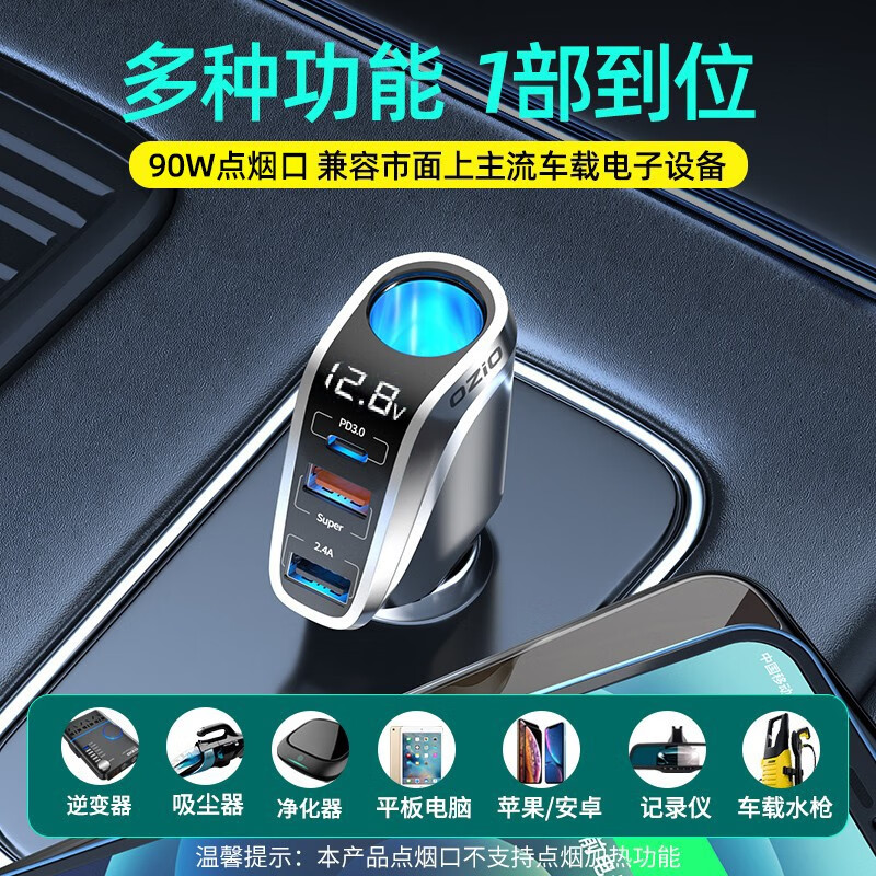 车载充电器座超级快充一拖二三点烟器转换插头汽车多功能扩展接口