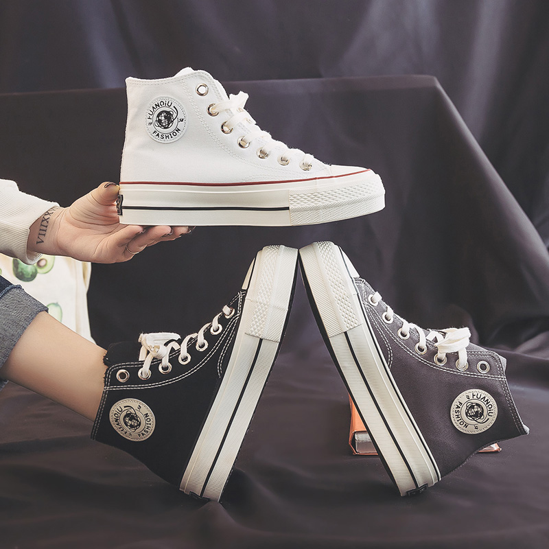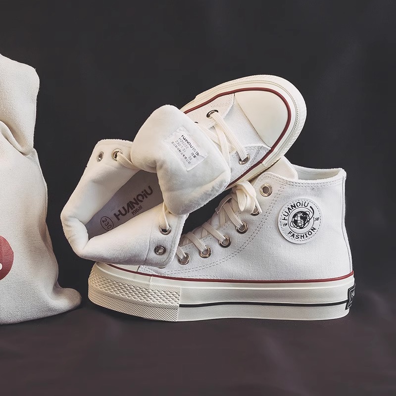 增高帮老爹鞋 帆布鞋 松糕厚底半拖爆款 秋冬小白鞋 麦昆百 女2025新款