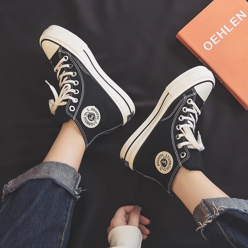 百搭学生休闲运动小众厚底板鞋 新款 子女2025年秋季 环球黑色帆布鞋