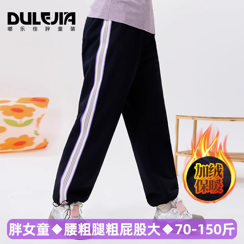 胖mm慵懒风松弛感加绒运动休闲裤 女秋季 子 黑色软糯奶芙阔腿裤 大码