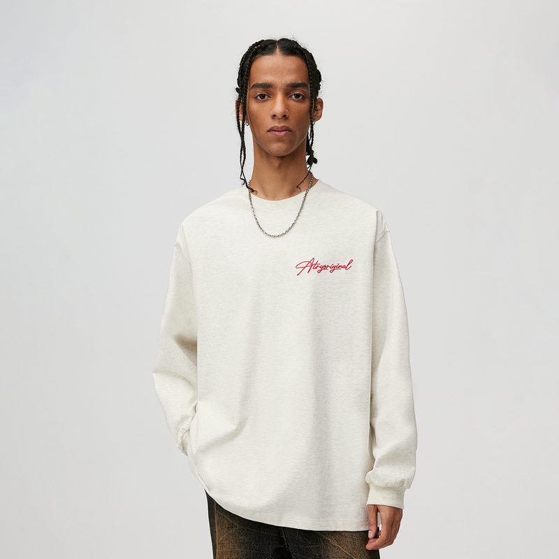 简约高街情侣T恤男 美式 ATRY花体小LOGO正面刺绣圆领长袖 秋冬季
