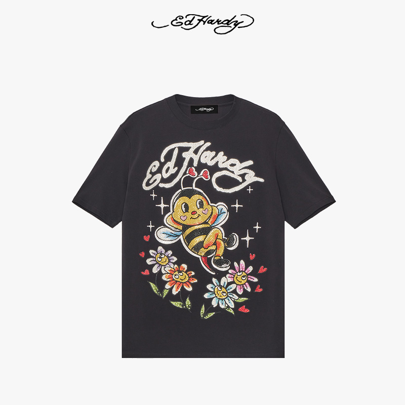 T恤 ins超火可爱小蜜蜂烫钻宽松短袖 Hardy埃德哈迪新款