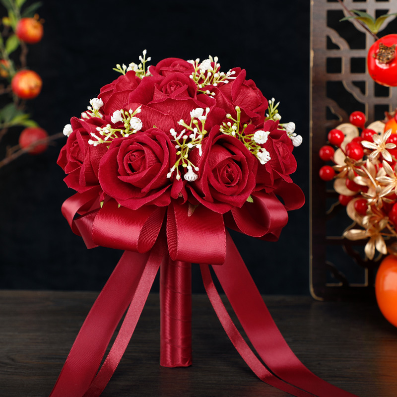 婚庆仿真花绢花红色假花摆设婚房布置花材结婚卧室可DIY花艺摆件