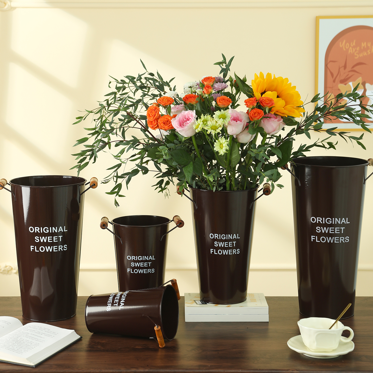 复古美式 咖深水鲜花桶家用醒花桶花店专用特大号铁艺干花筒高颜值