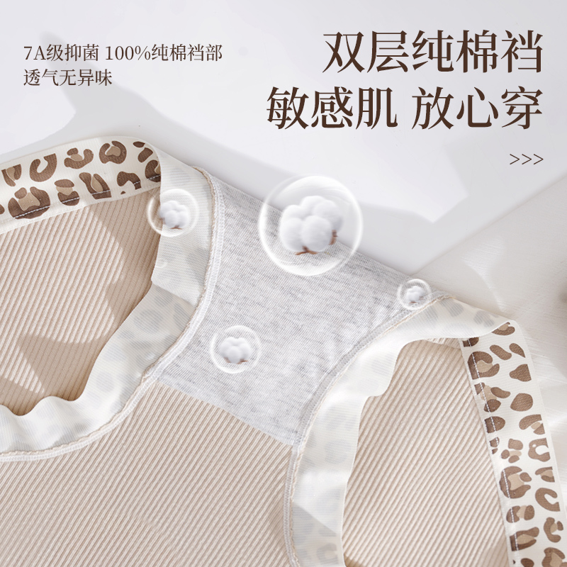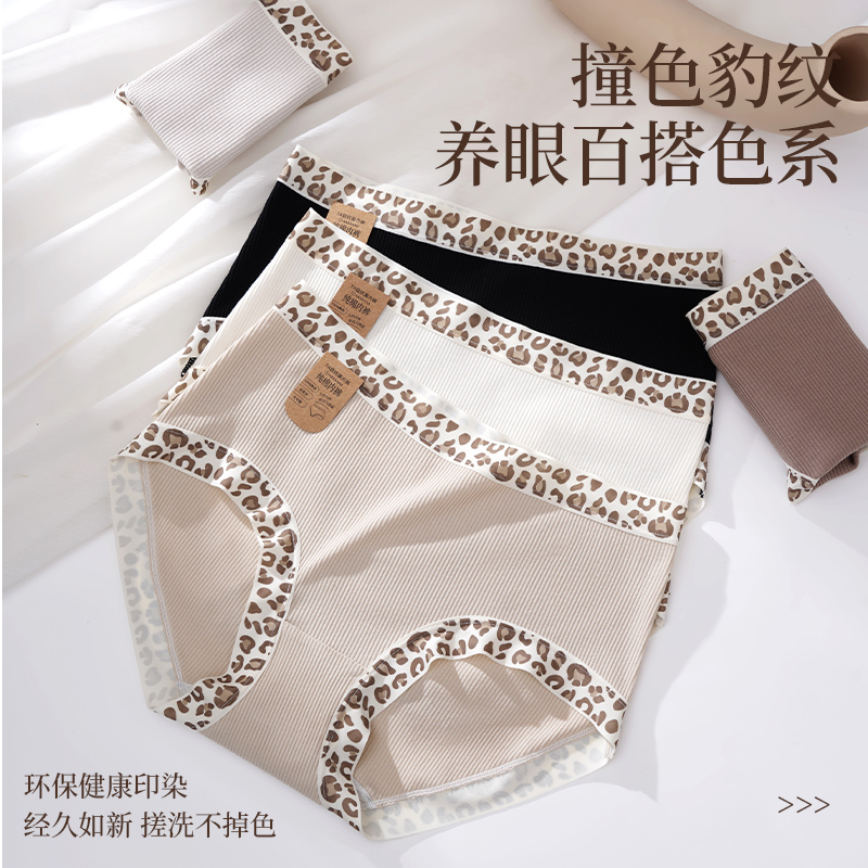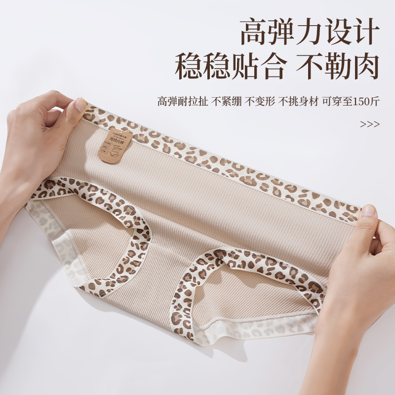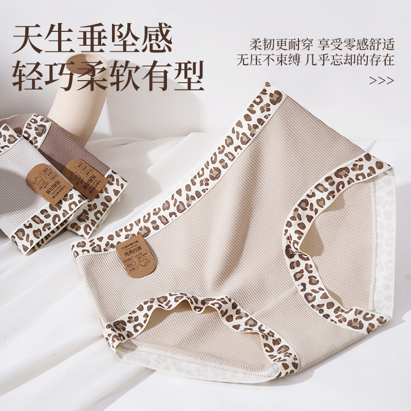 猫人豹纹边女士内裤 女 7A抑菌纯棉內裆中腰云感无痕柔软舒适三角裤