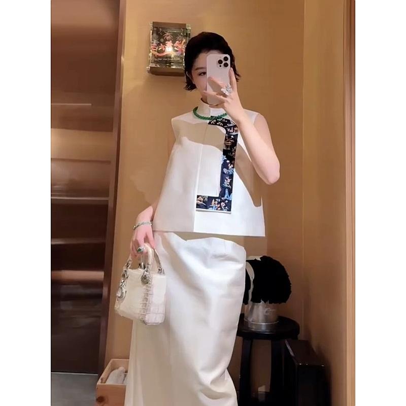 新中式 夏 国风穿搭一整套轻奢高级感独特漂亮小香风马夹半身裙套装