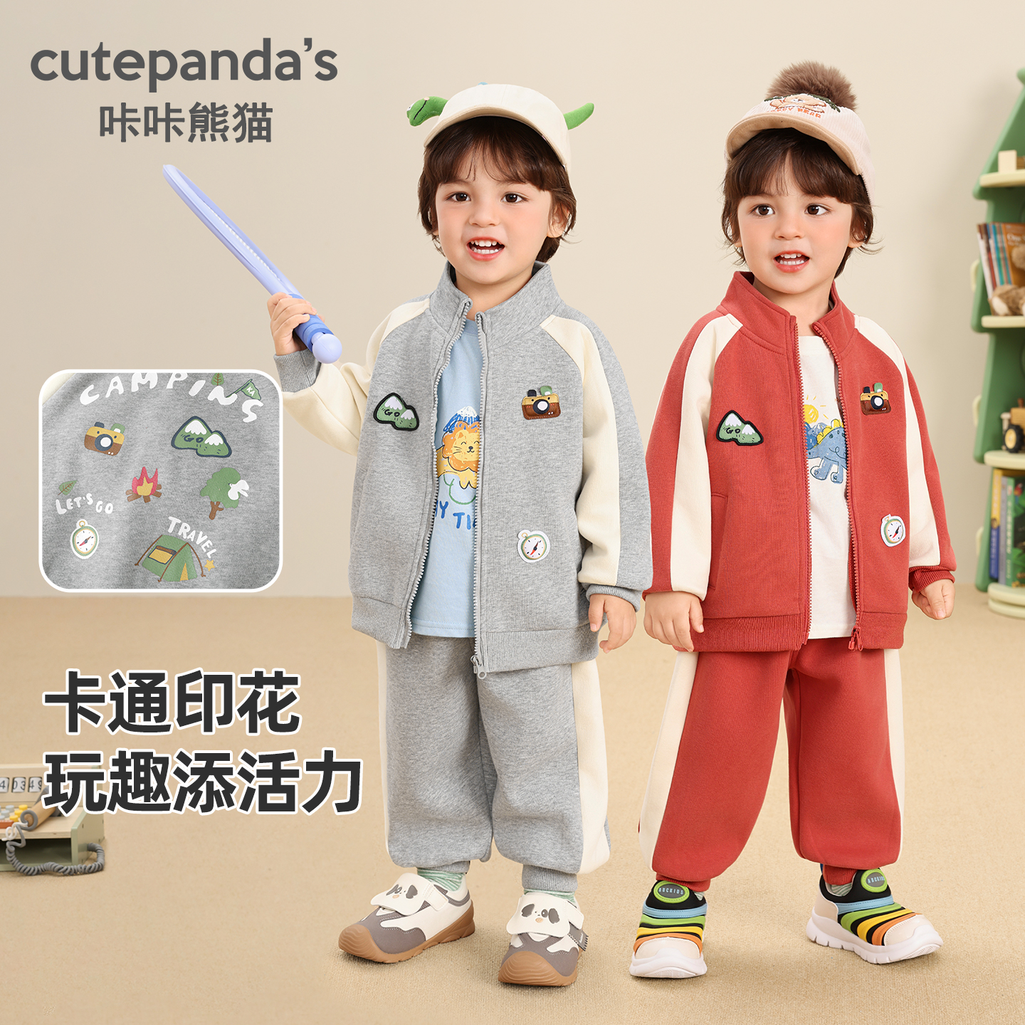 童装 咔咔熊猫宝宝运动套装 子两件套秋季 儿童休闲外套裤 衣服潮 秋款