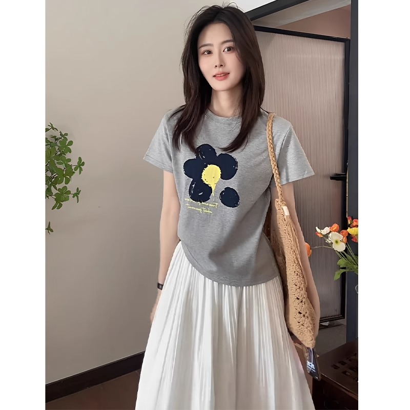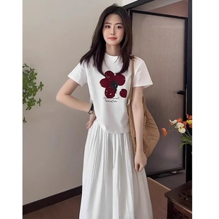 中长款 大码 纯棉宽松秋冬圆领打底衫 T恤女装 白色内搭上衣长袖