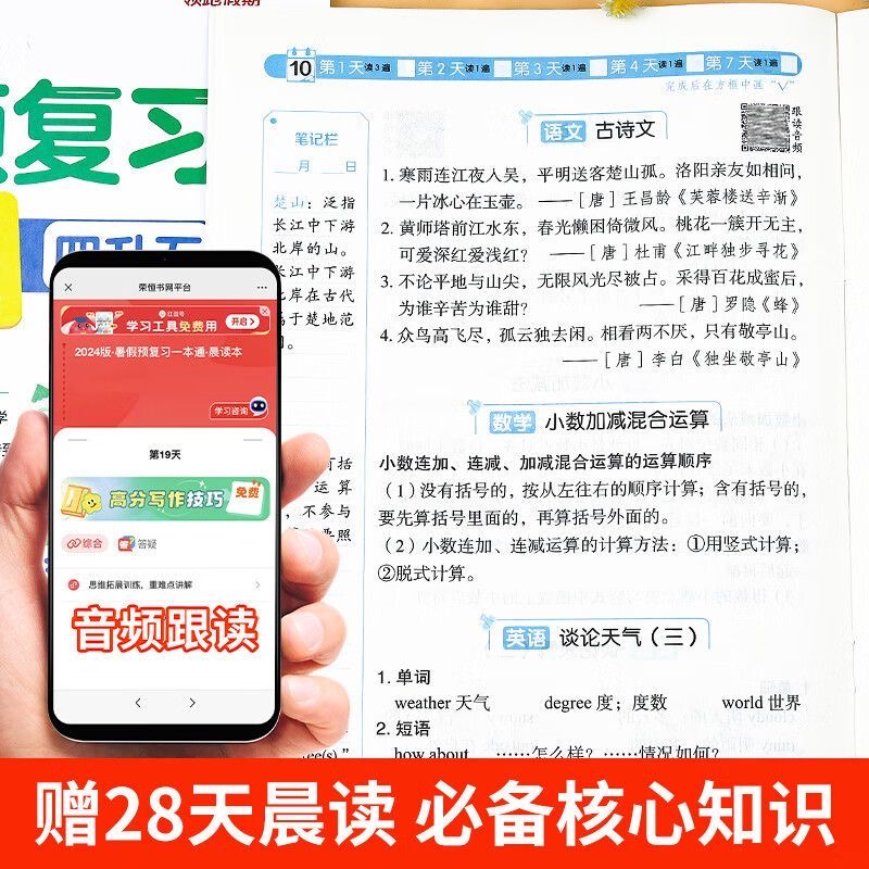 暑假预复习一本通四升五语文数学英语暑假作业人教版 四年级下册假衔接五年级上册练习30天打卡计划4升5暑假作业阅读口算专项训练