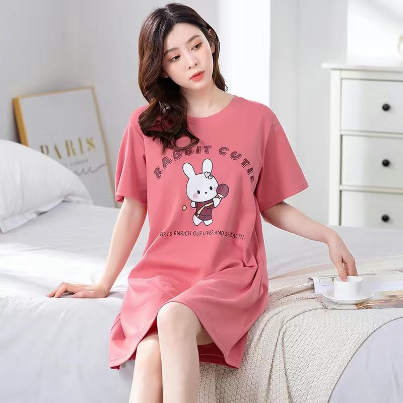 可爱宽松大码 睡衣2025新款 可外穿连衣裙子 纯棉短袖 芬腾睡裙女夏季