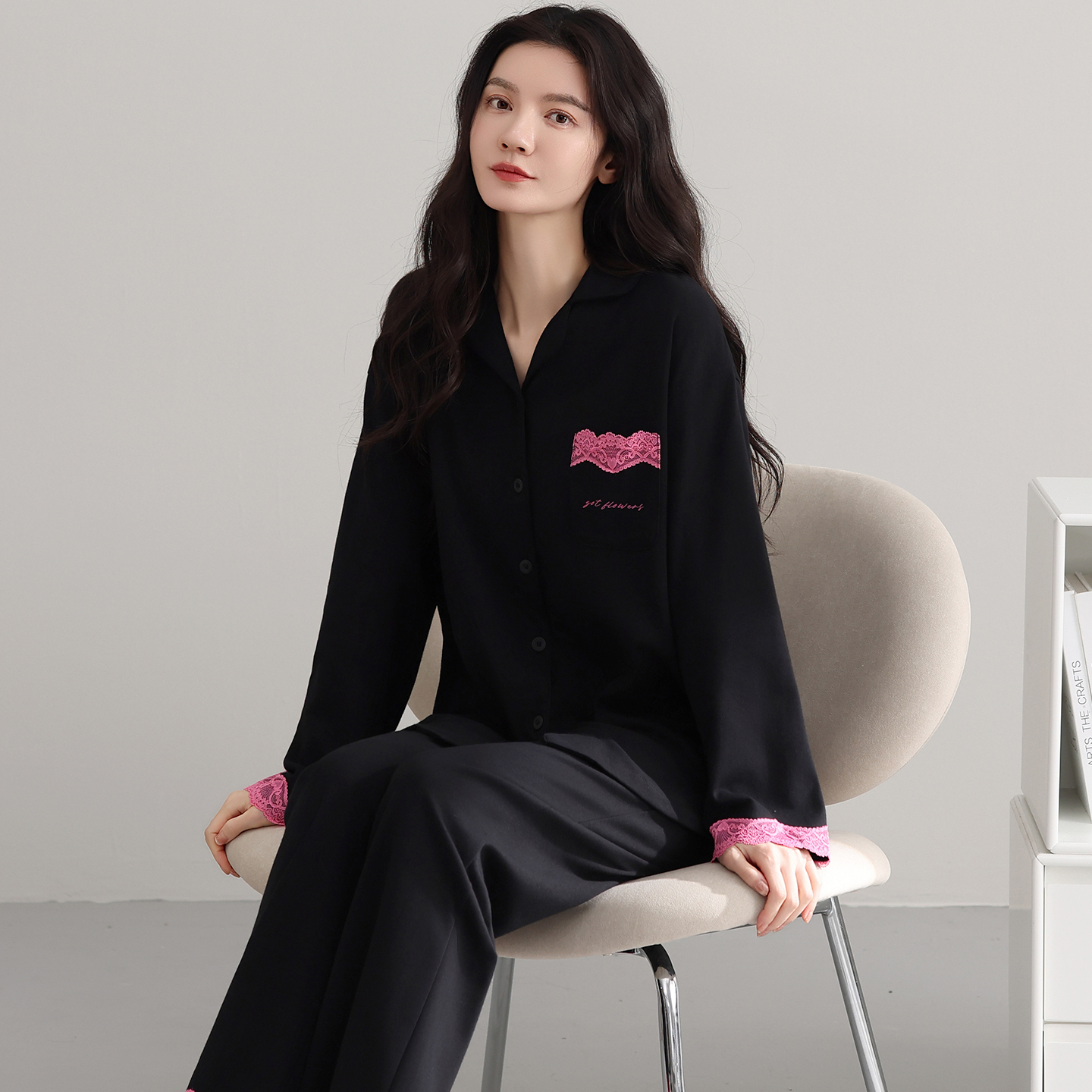 家居服套装 纯棉睡衣女带胸垫宽松全棉舒适秋季 长裤 宜而爽秋天长袖