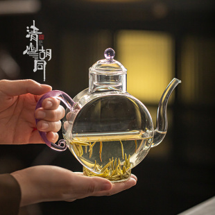 清山胡同家用高硼硅耐热玻璃泡茶壶单壶中式 复古功夫茶具一壶两杯