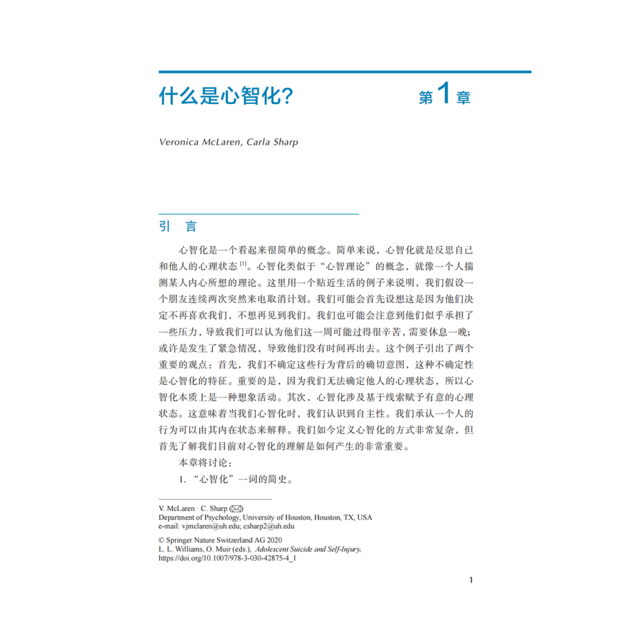 个人和家庭层面心理治疗 具体方法 基本组成部分 心理治疗所涉及 心智化治疗与自我护理 解决自杀和自伤 心智化与青少年自伤