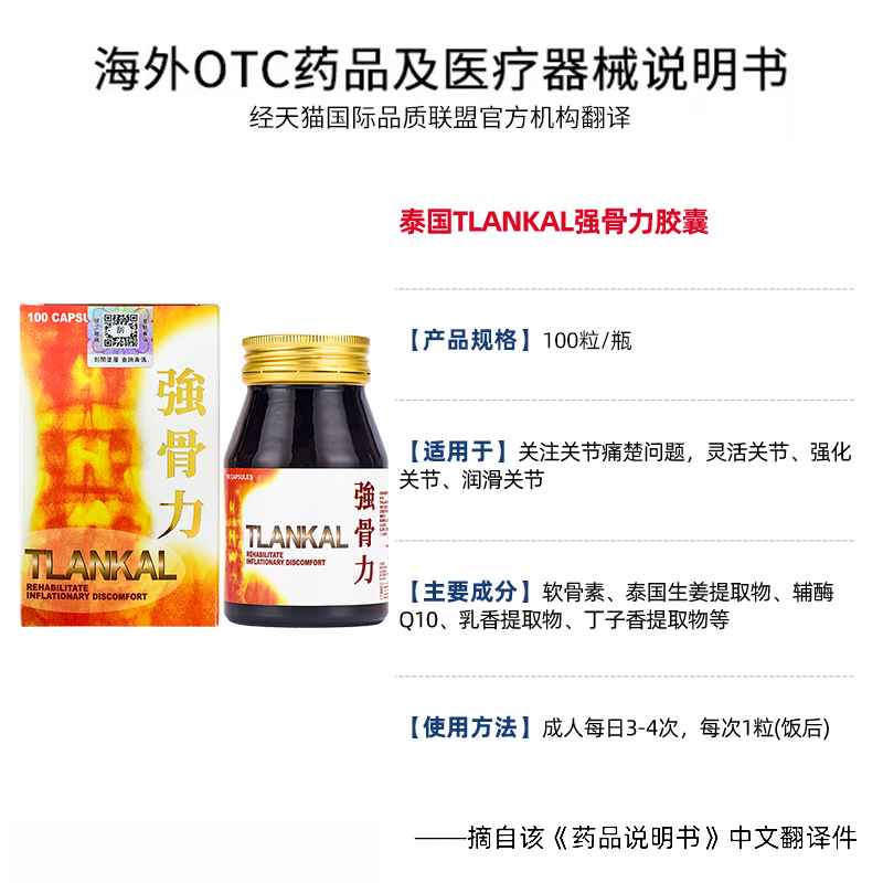 强骨力胶囊泰国版 保价 tlankal关节疼痛专用止痛风湿 双11预售