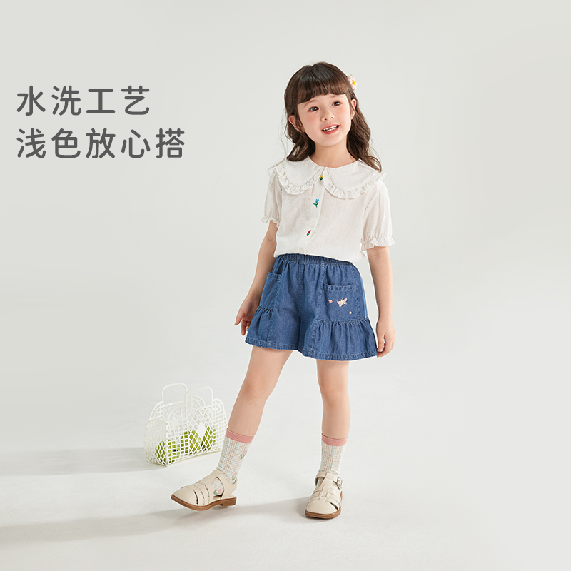 儿童夏款 子夏季 花边纯棉外穿小童夏装 洋气宝宝裤 热裤 女童牛仔短裤