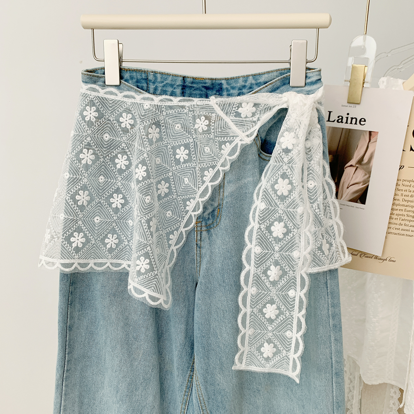 蕾丝镂空半身裙女叠穿纱裙百搭韩版 短裙屁帘春夏三角头巾2025新款