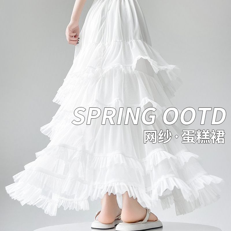 高腰a字中长款 半身裙女春夏2025新款 气质仙女蛋糕裙 服饰 NOME