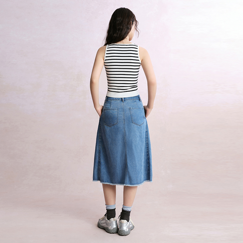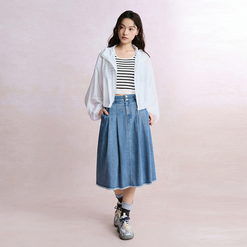 太平鸟工装 秒杀 A字短裙显瘦折胯斜纹高腰半身裙简约潮流 断码