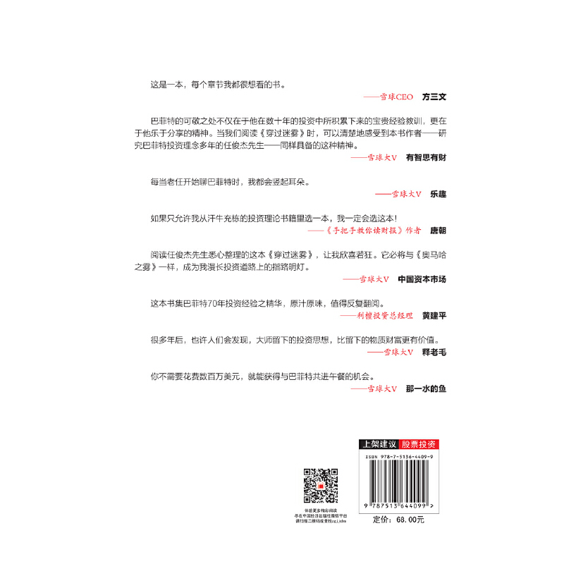 巴菲特 护城河 正版 当当网 书籍 奥马哈 穿过迷雾:巴菲特投资与经营思想之我见 雪球大V价值投资践行者 段永平作序推荐