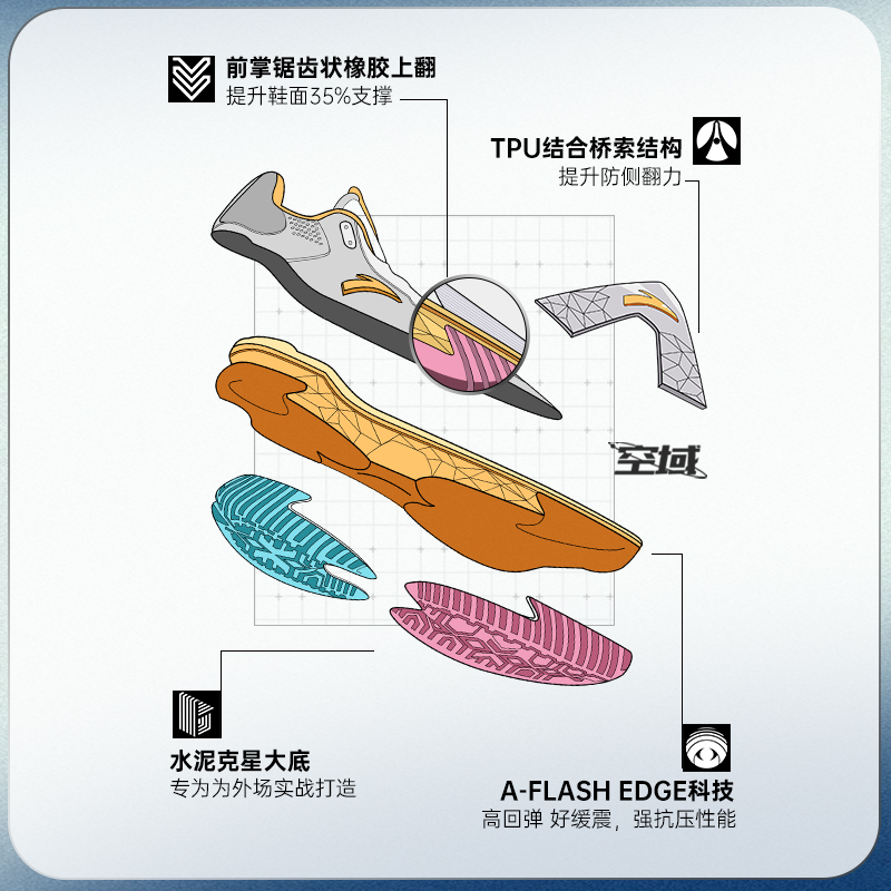 运动鞋 男缓震防滑防侧翻专业实战男鞋 水泥外场篮球鞋 安踏空域5