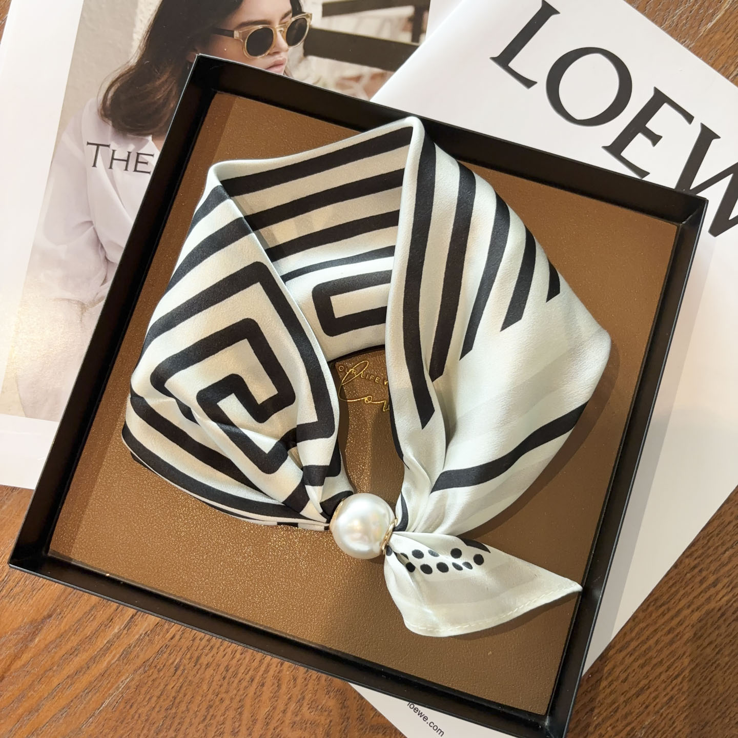时尚 珍珠磁扣锁骨链长条项链真丝丝巾春夏100%桑蚕丝领巾围巾 新款