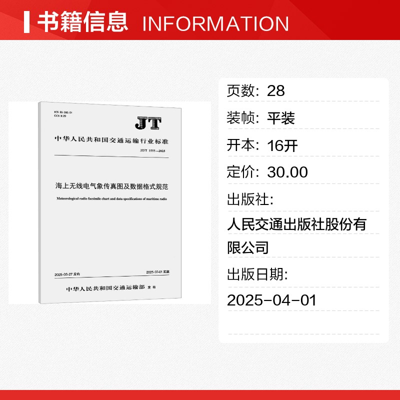 建筑 规范 2025 海上无线电气象传真图及数据格式 水利 新华书店正版 专业科技 图书籍 1555 新 中华人民共和国交通运输部