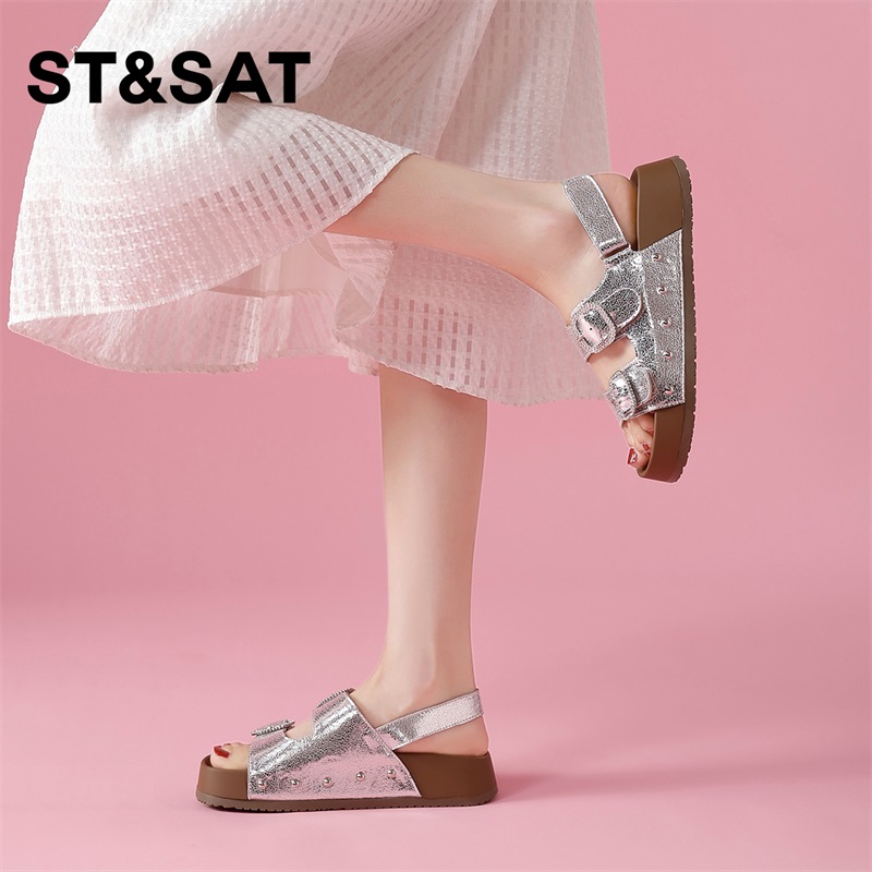 女款 夏天外穿爆款 鞋 星期六银色凉鞋 凉拖鞋 新款 子时装 女夏2025夏季