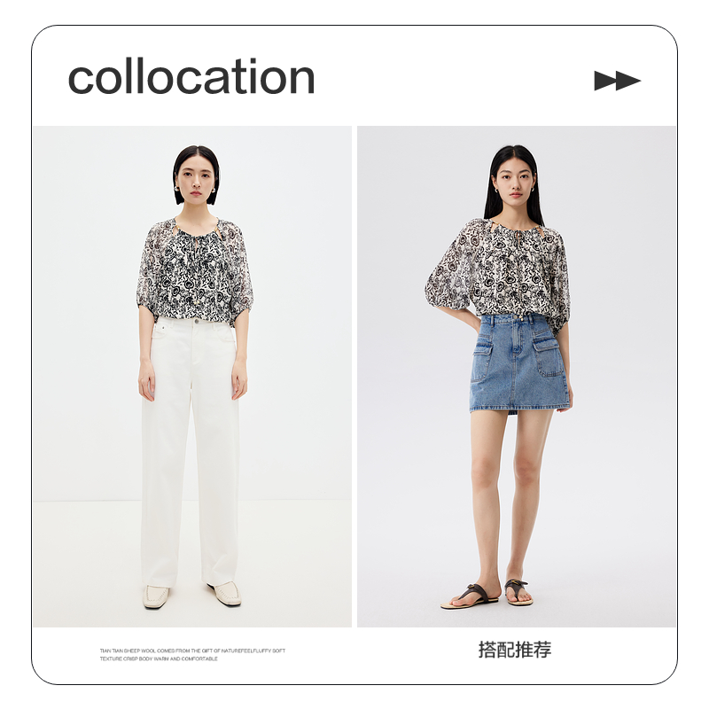 女灯笼袖 新款 上衣七分袖 2025夏季 薄纱小衫 水云间波西米亚风雪纺衫