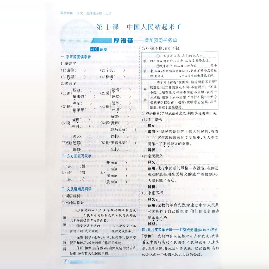 高中同步训练语文选择性必修上册人教版 社高二RJ课堂习题一课一练专项训练课时课后练习题作业本 配套练习册新教材河北人民出版