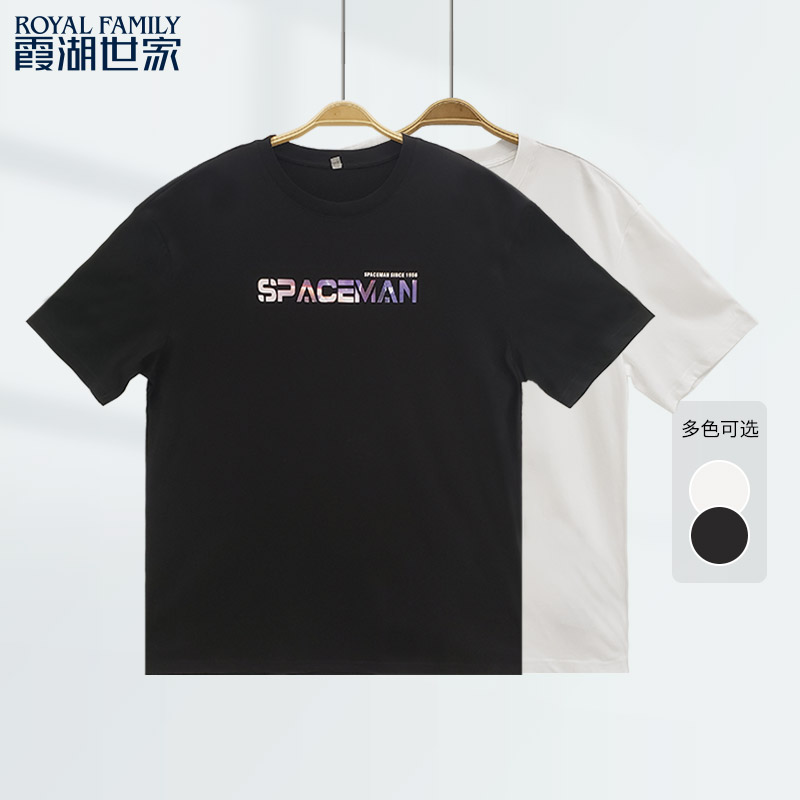 流行上衣 霞湖世家纯棉T恤男太空人卡通印花宽松圆领短袖 清仓