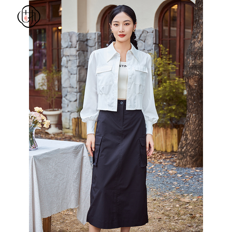 工装 a字中长款 半身裙 新款 白色高腰抗皱速干伞裙女春秋2025年夏季
