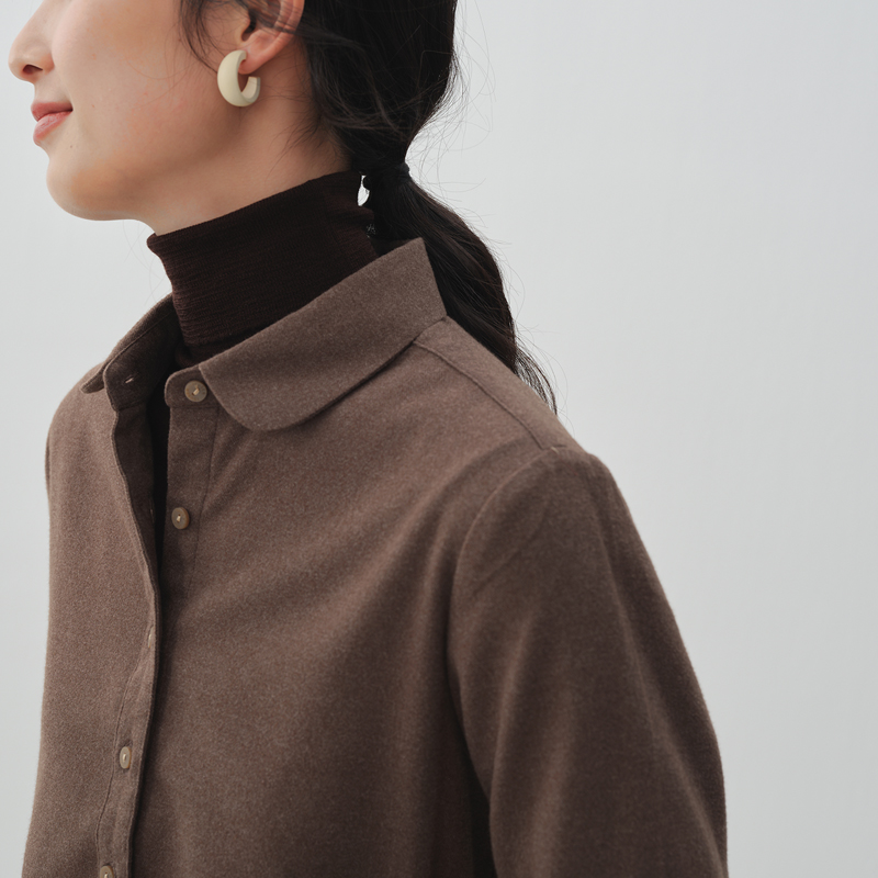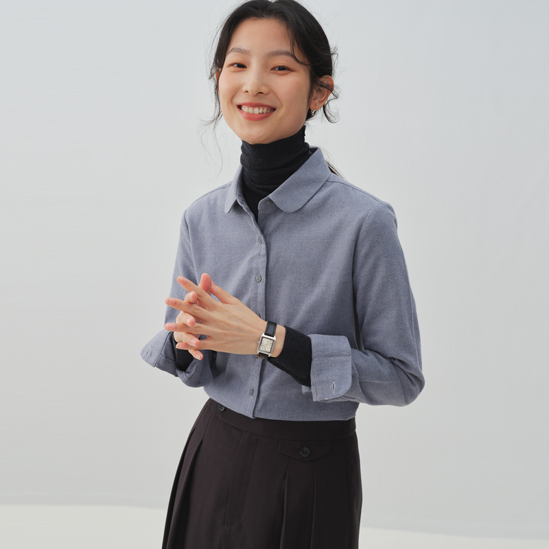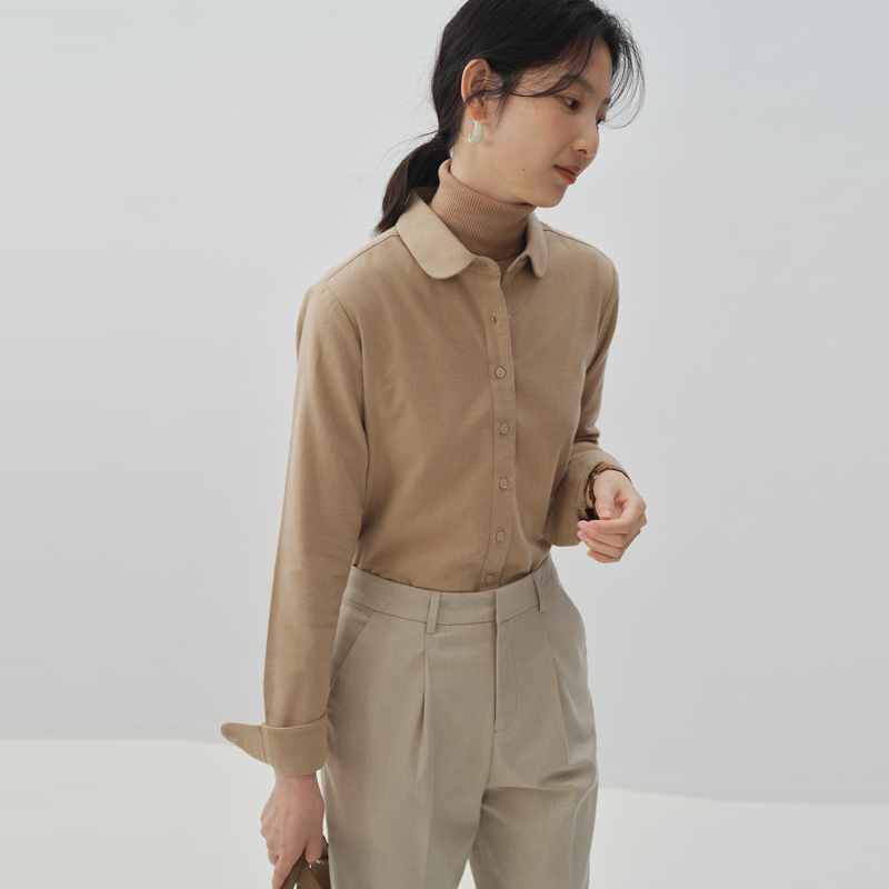 厚款 秋冬新款 娃娃领叠穿休闲小个子棉衬衣 女长袖 宿·色磨毛衬衫